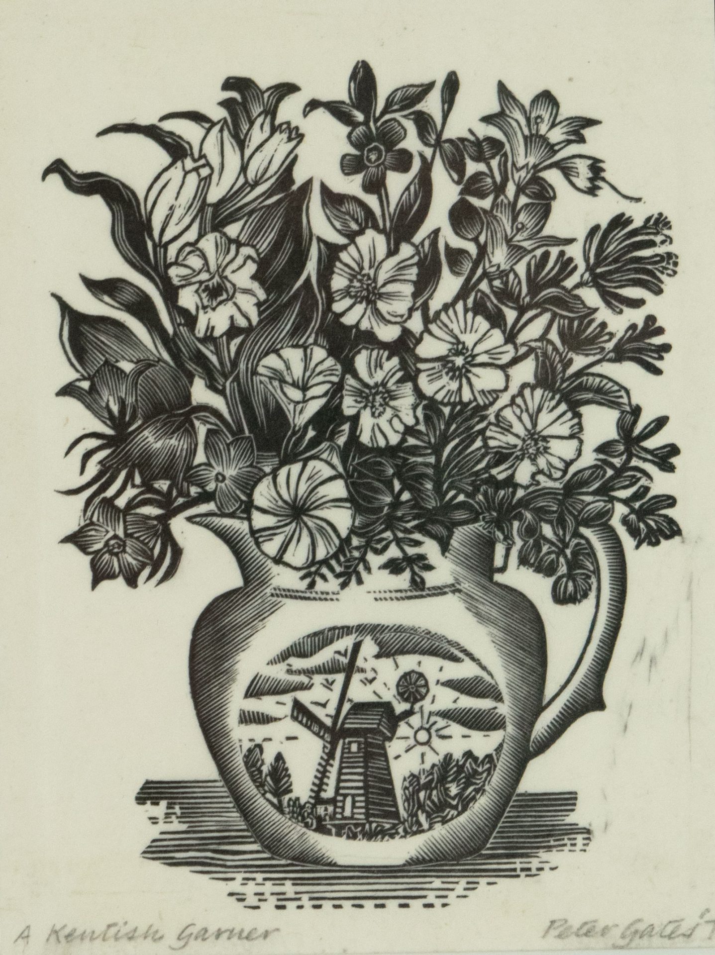 An original wood engraving by twentieth century artist, Peter Gates.