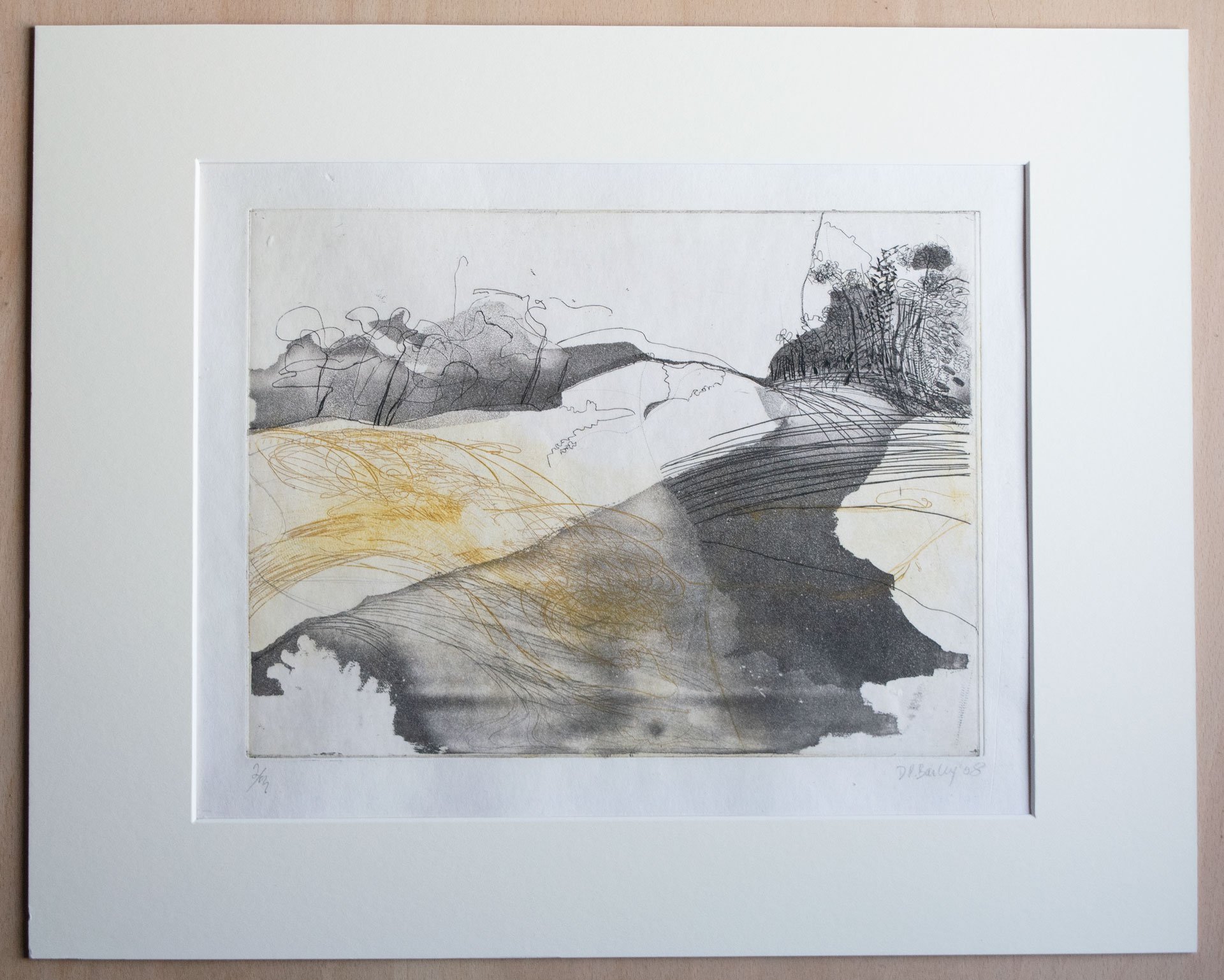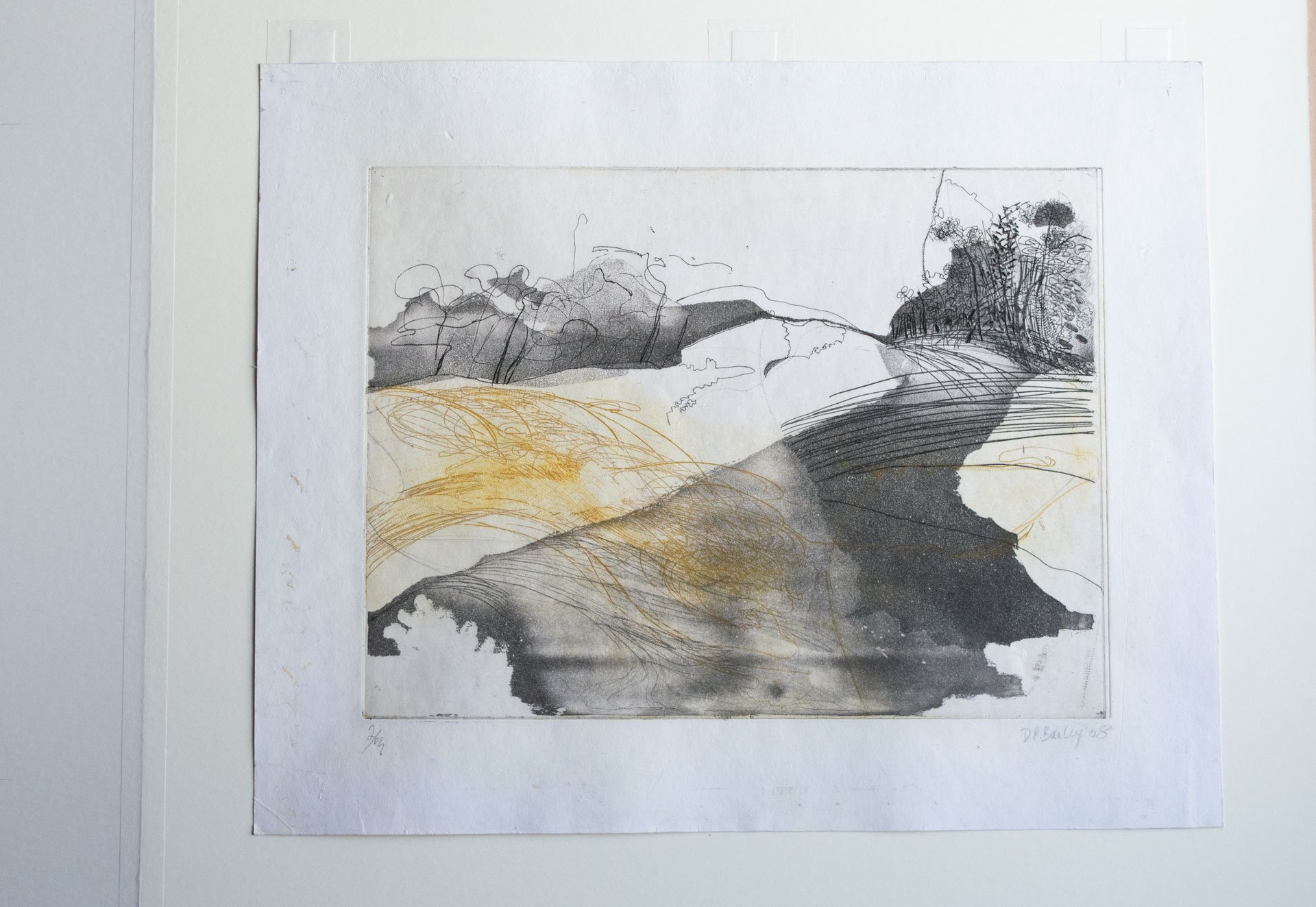 This etching / aquatint is a bright and engaging abstract landscape. It looks like there are a few experiments of technique, but it all comes together in a very satisfying way. It’s not clear whether it’s from 1968 or 2008, but it the work looks more modern than 68.