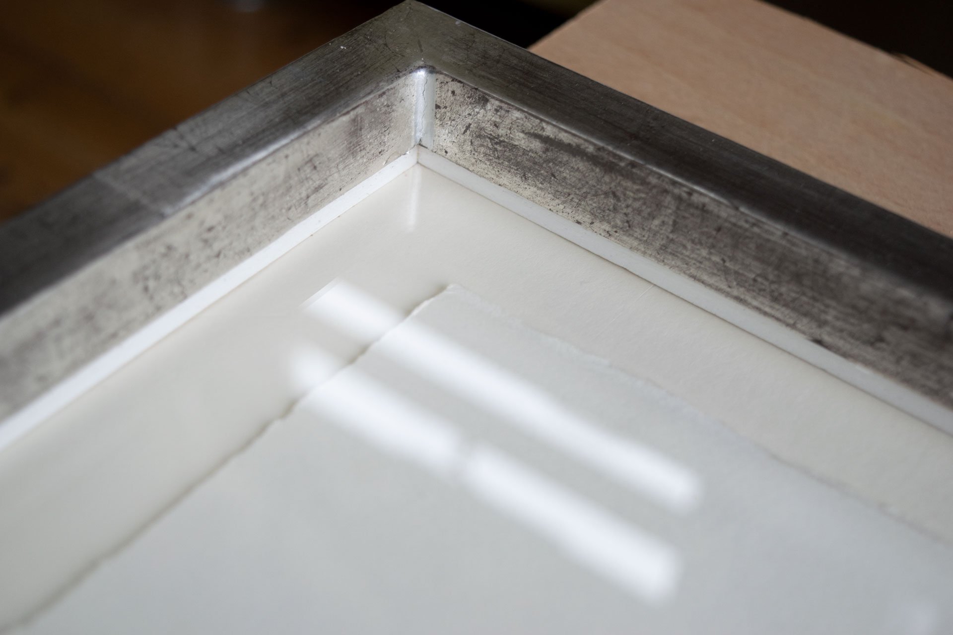 In original silver wooden frame, in excellent condition with only very light wear in a couple of places on the frame.