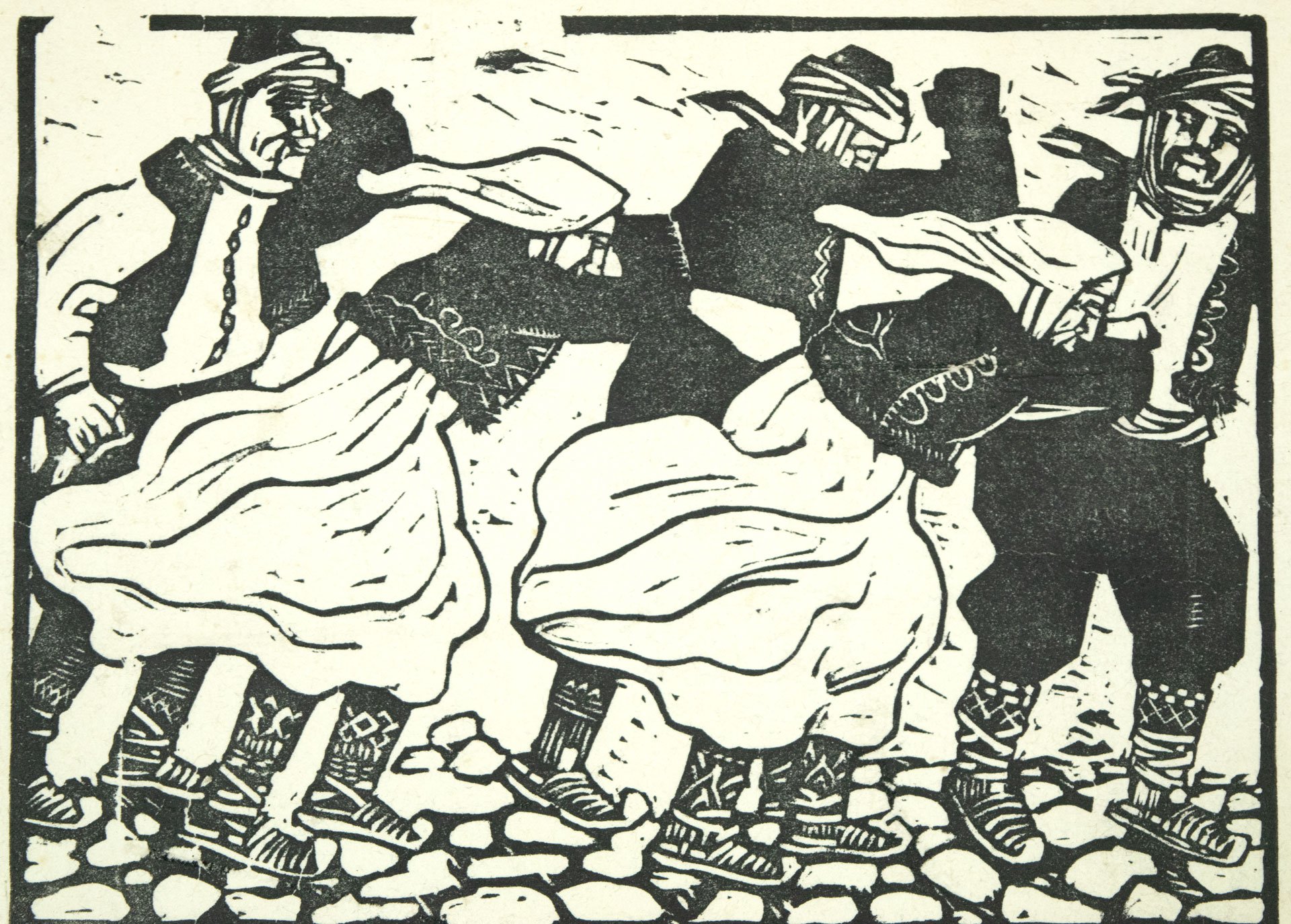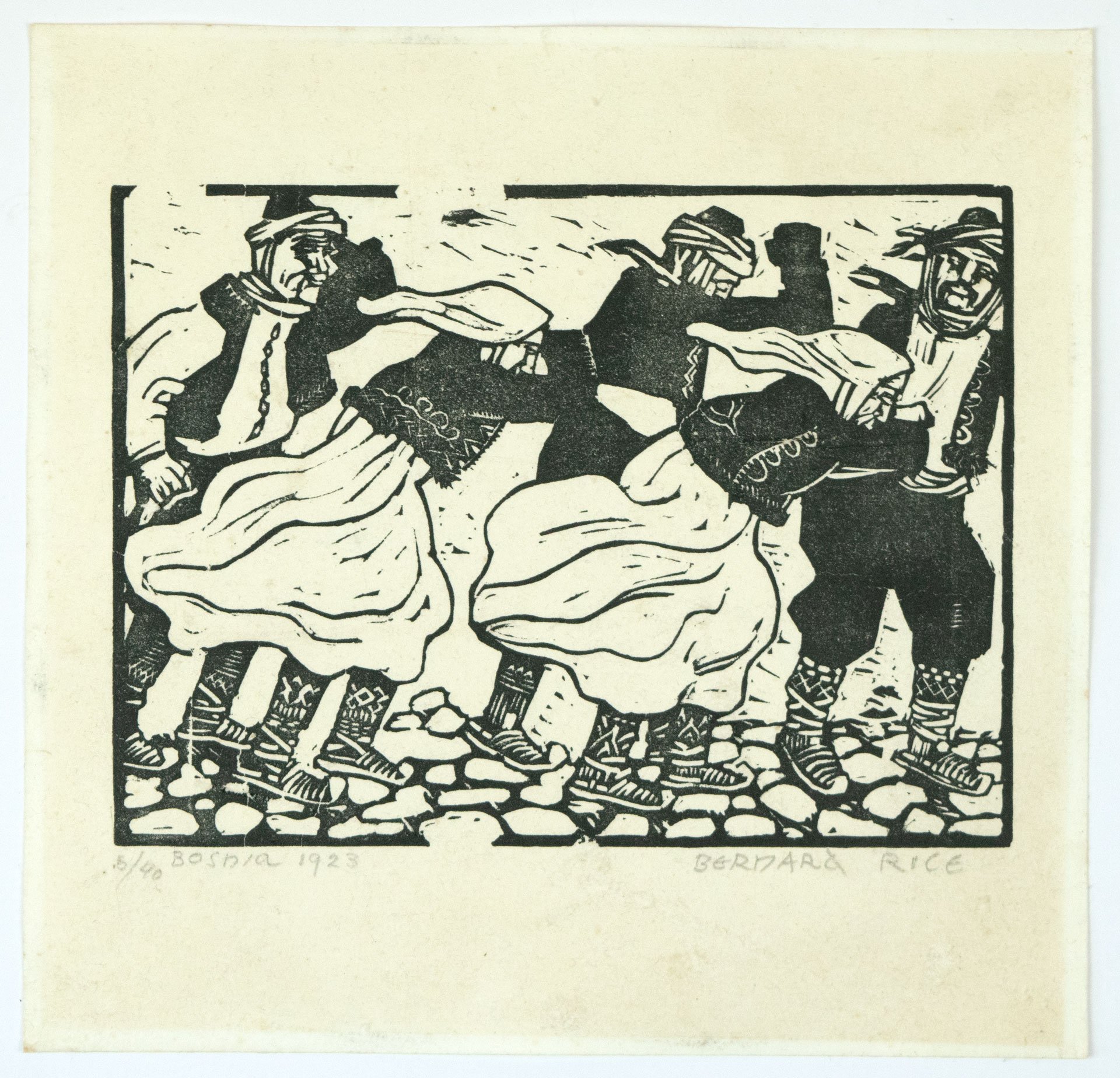 Another image from Bernard Rice focusing on the people of Eastern Europe. This woodblock print entitled ‘Bosnia’ appears to show people struggling against harsh weather. See our Bernard Rice page for more original artworks.