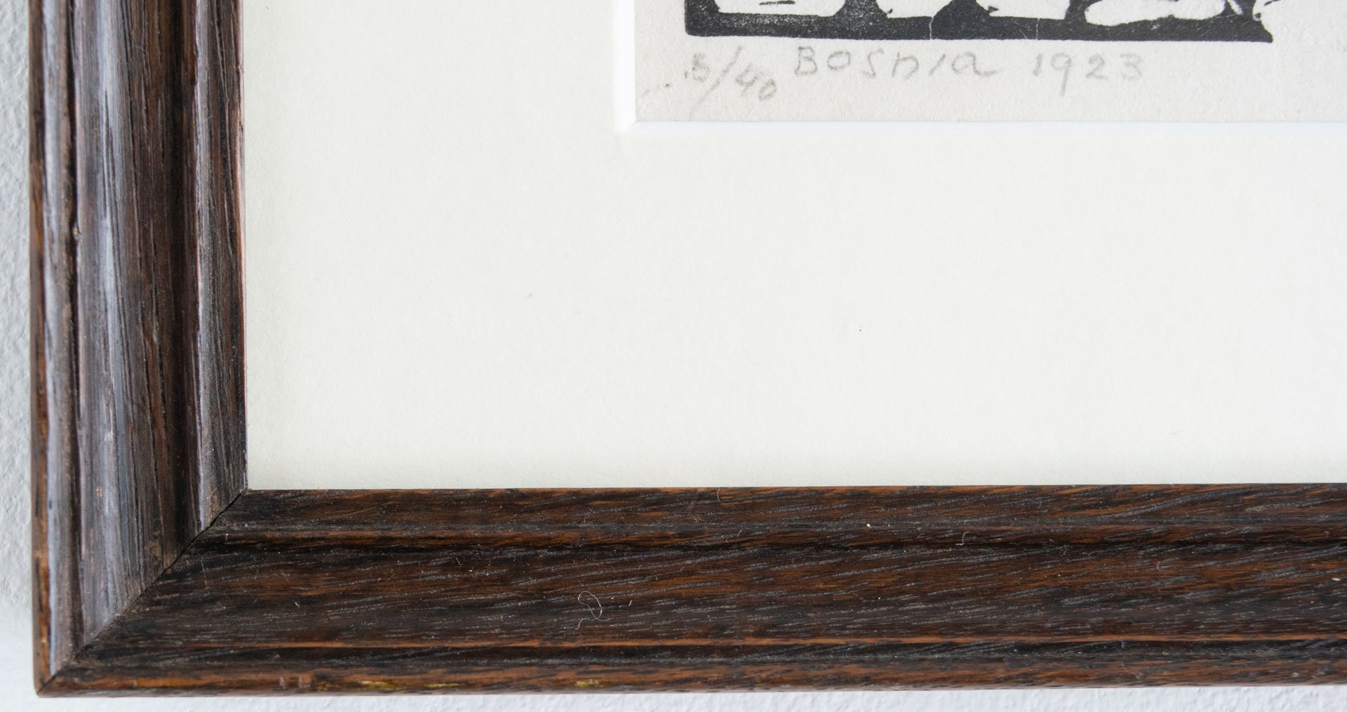 Framing: Framed in a vintage solid wood frame, that has some wear, but is in good condition overall. Mounted with conservation standard mount-board.